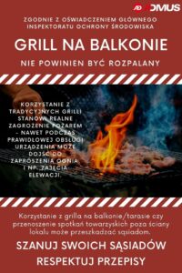 Grill na balkonie – zdecydowanie NIE Opublikowany 28 lipca 2025 przez Przypominamy, że palenia grilla na balkonie czy tarasie jest zabronione.